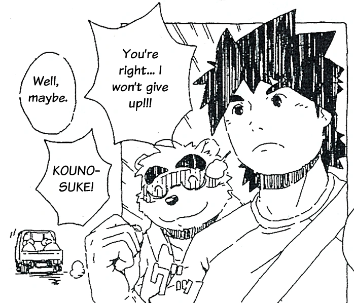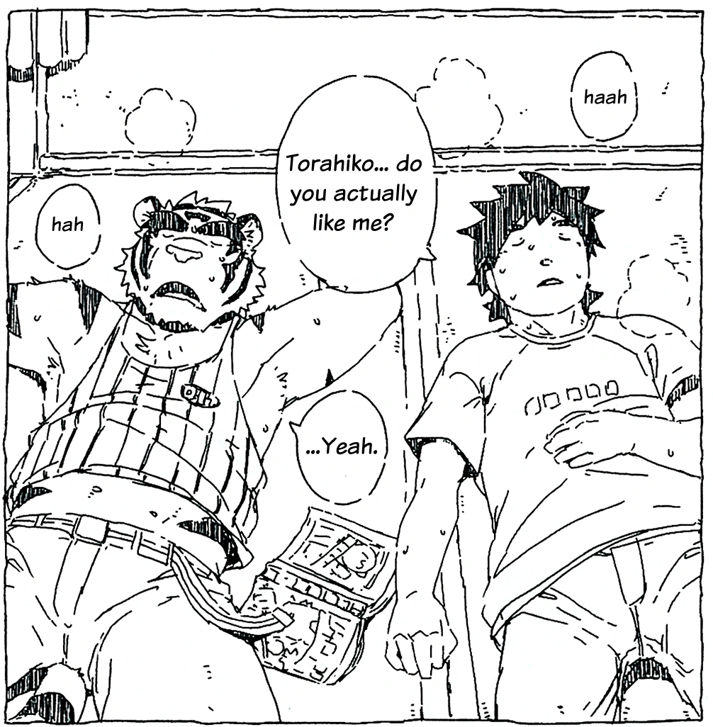 Later in the story, Hiroyuki is able to cheer him up and restore his cheerful attitude. Torahiko promises that he will win the tournament next year and forcefully date Hiroyuki, staying friends until then. However, they both realize they will struggle to keep this promise, though they manage to settle things and wait until next year.
